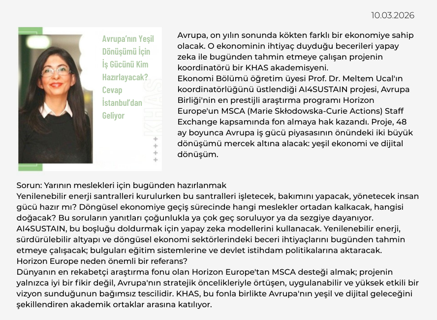 Kadir Has University, Department of Economics; Center for Energy and Sustainable Development; Professor of Economics